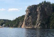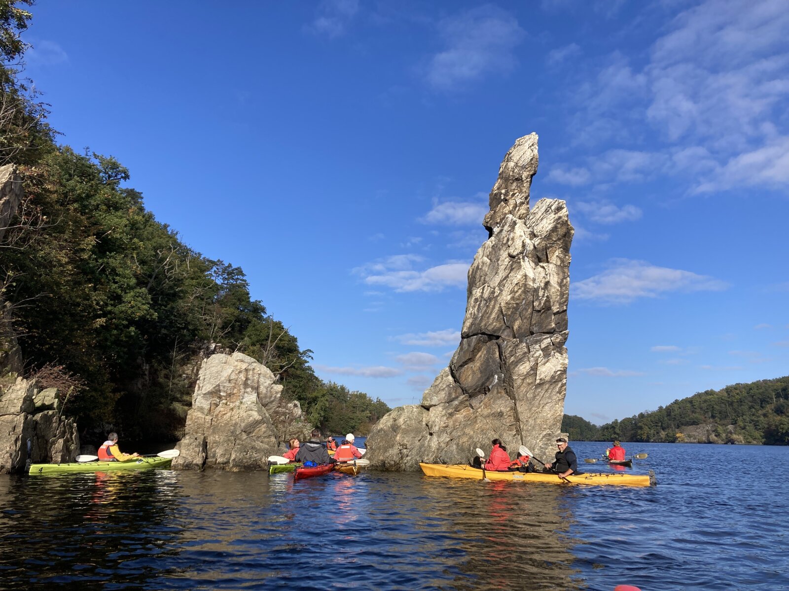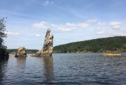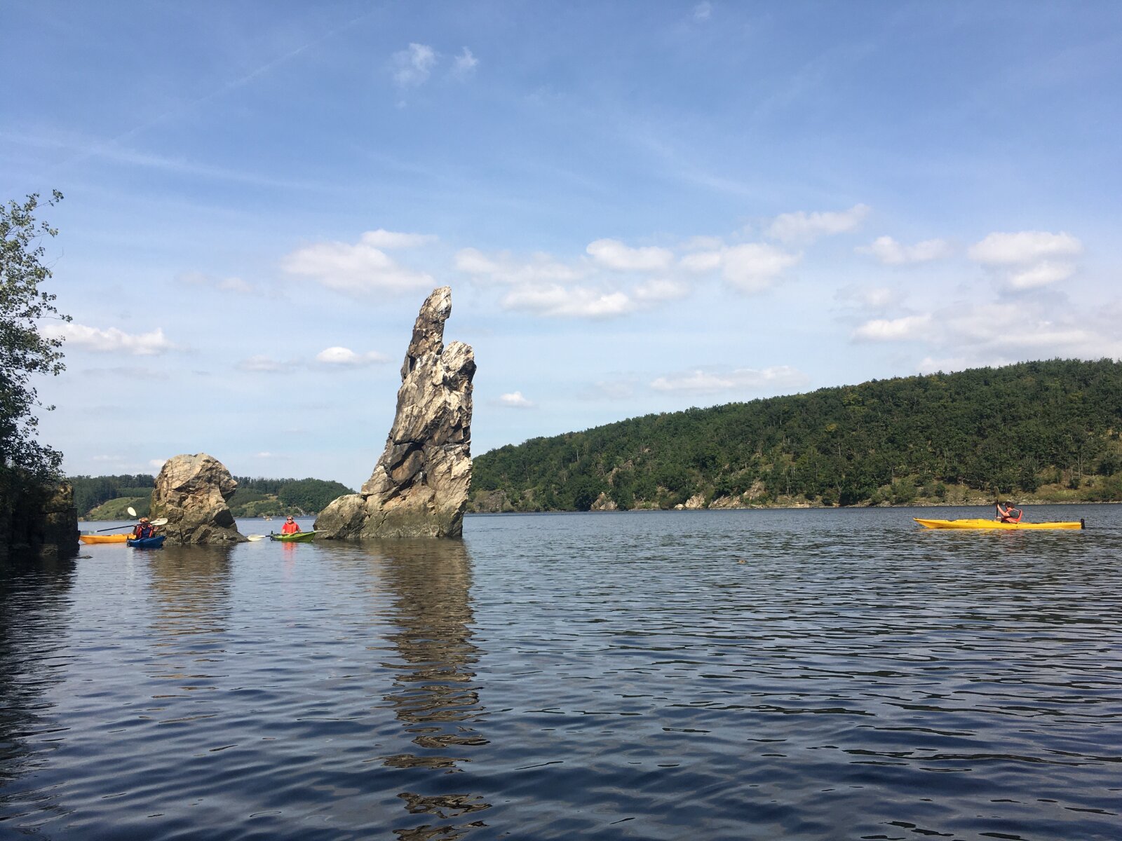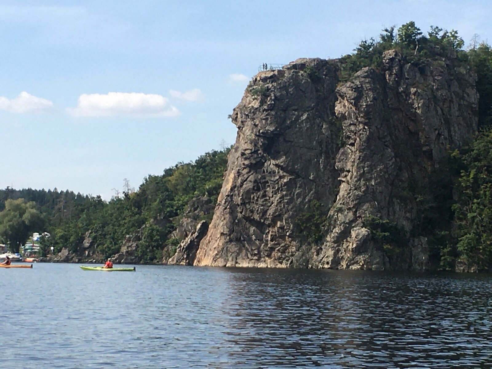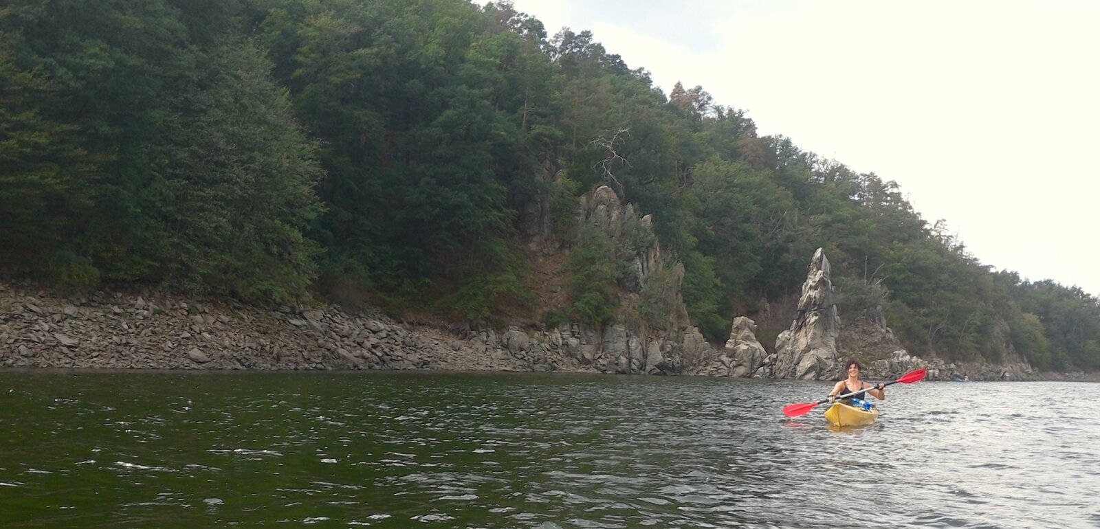 Kochejte se z vodní hladiny řadou skalních útvarů, jejichž přítomnost v zalesněném údolí dotváří romantickou atmosféru této oblíbené horolezecké lokality.