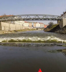 Čeká na vás krásně upravený sjízdný jez Riviéra i peřej pod jezem, nábřeží, tůně, mosty, lávky, vlaky, mola i ruch velkoměsta